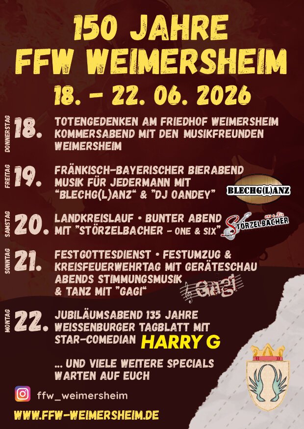 Werft einen Blick auf das Programm des Jubiläumswochenendes der FFW Weimersheim