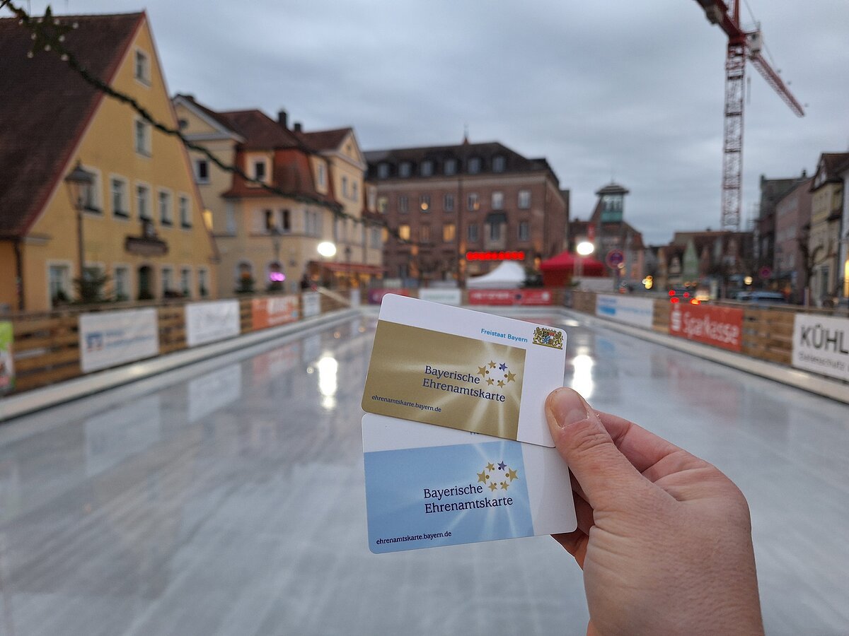 Für alle Ehrenamtskartenbesitzer hieß es an diesem Tag „Eisbahn frei!“ - denn sie erhielten während der Öffnungszeiten kostenlosen Eintritt auf die Eisfläche. Des Weiteren gab es in zahlreichen Geschäften rund um den Marktplatz in Gunzenhausen Vergünstigungen und Rabatte für Inhaber der bayerischen Ehrenamtskarte. Informationen rund um das Thema Ehrenamt erhielte Interessierte darüber hinaus am Stand der Freiwilligenagentur Altmühlfranken und auch die Bürgerstiftung des Landkreises Weißenburg-Gunzenhausen gab Einblicke in ihr Wirkungsfeld. Ein Gewinnspiel sowie das Glücksrad der Bürgerstiftung rundeten das Angebot ab.
