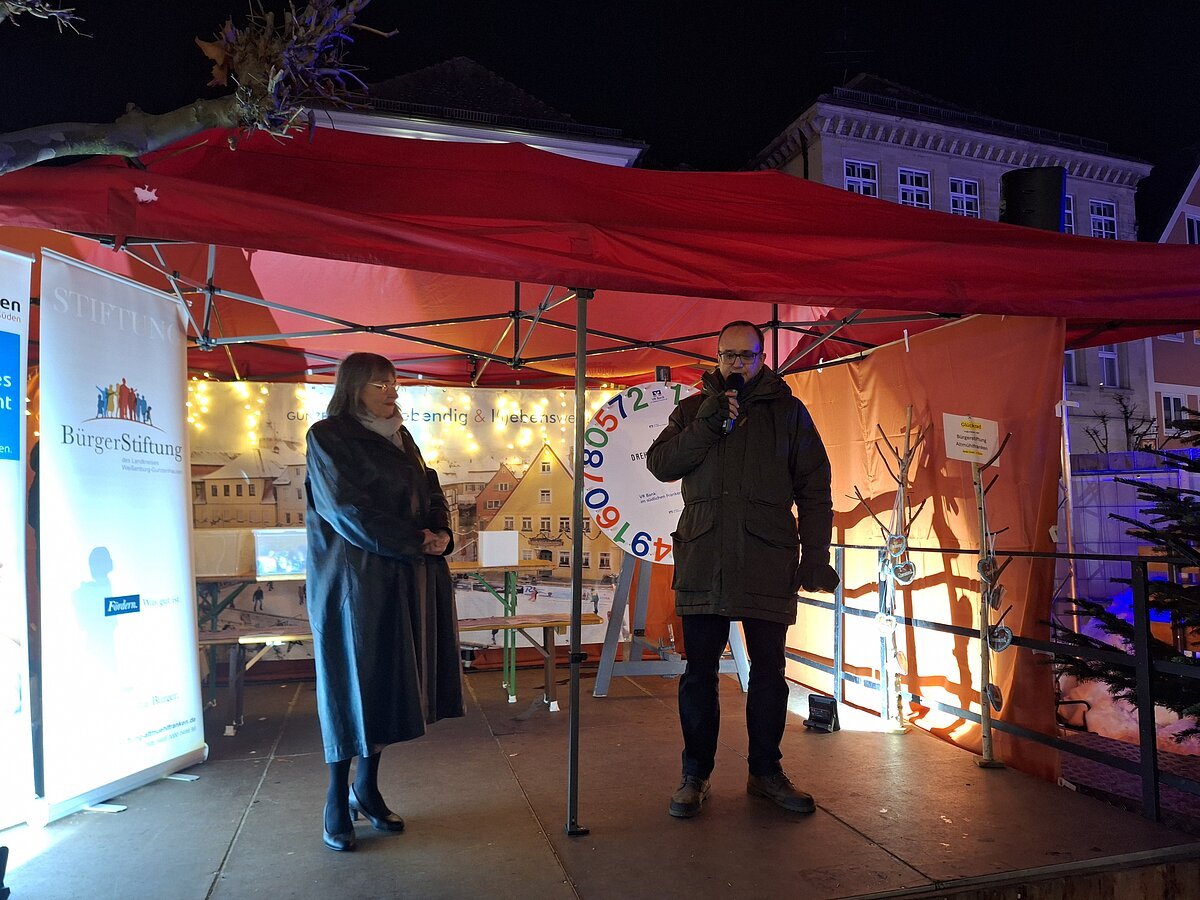 Am Abend richteten dann Landrat Manuel Westphal und die 3. Bürgermeisterin der Stadt Gunzenhausen, Sigrid Niesta-Weiser, ihre Worte an die Besucher. Sie würdigten den Einsatz vieler Ehrenamtlicher und dankten für deren vielseitigen, gemeinwohlorientierten und selbstlosen Einsatz für die Gesellschaft. Im Anschluss erfolgte die LIVE-Ziehung der Hauptpreise des Gewinnspiels. Die drei ausgelosten Gewinner durften sich über einen Kurzurlaub für zwei Personen im Floating Village Brombachsee freuen, ebenso über ein 4-Gänge-Altmühlfranken Weihnachtsmenü sowie einen 100,00 Euro Altmühlfranken-Gutschein.